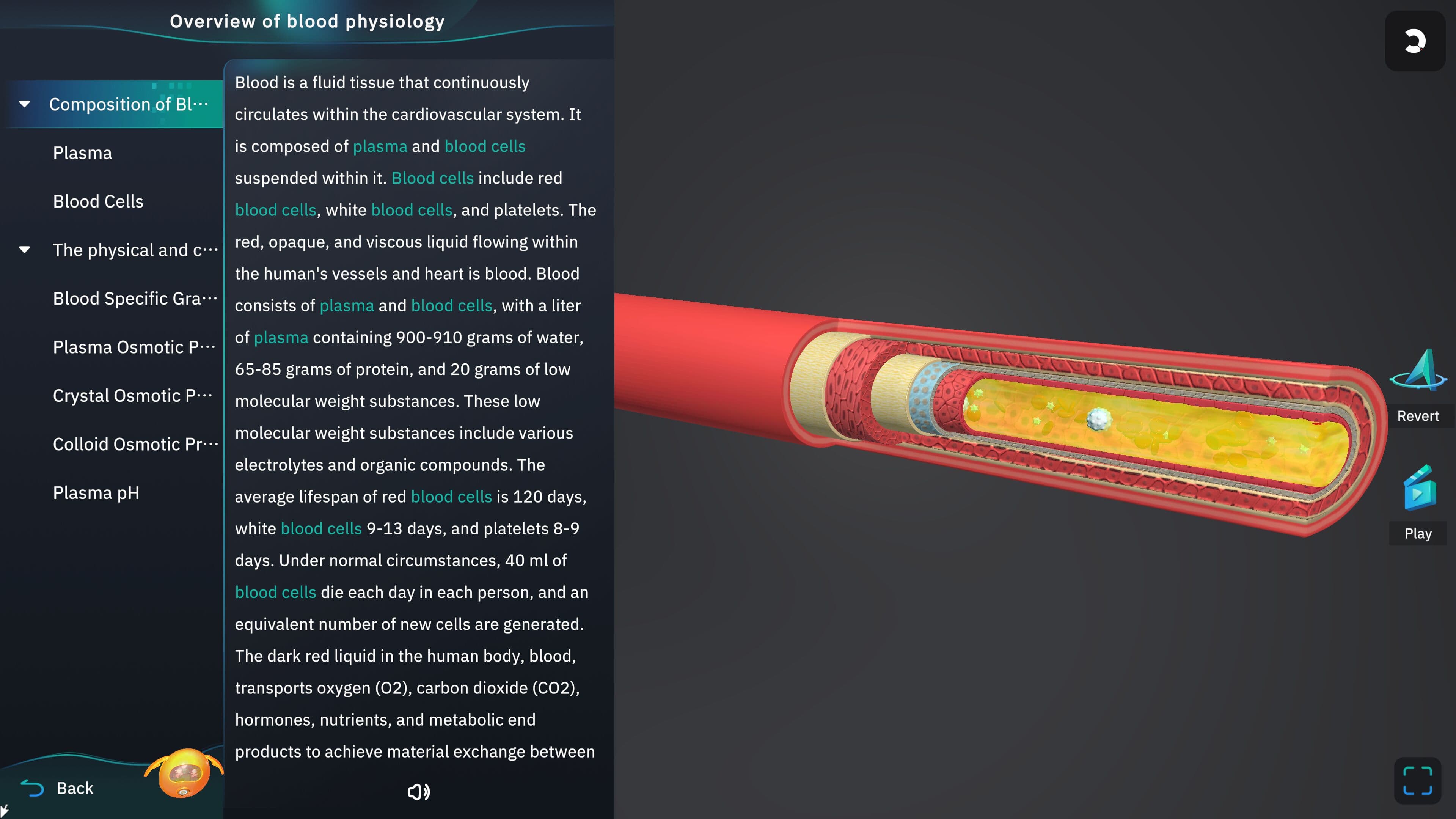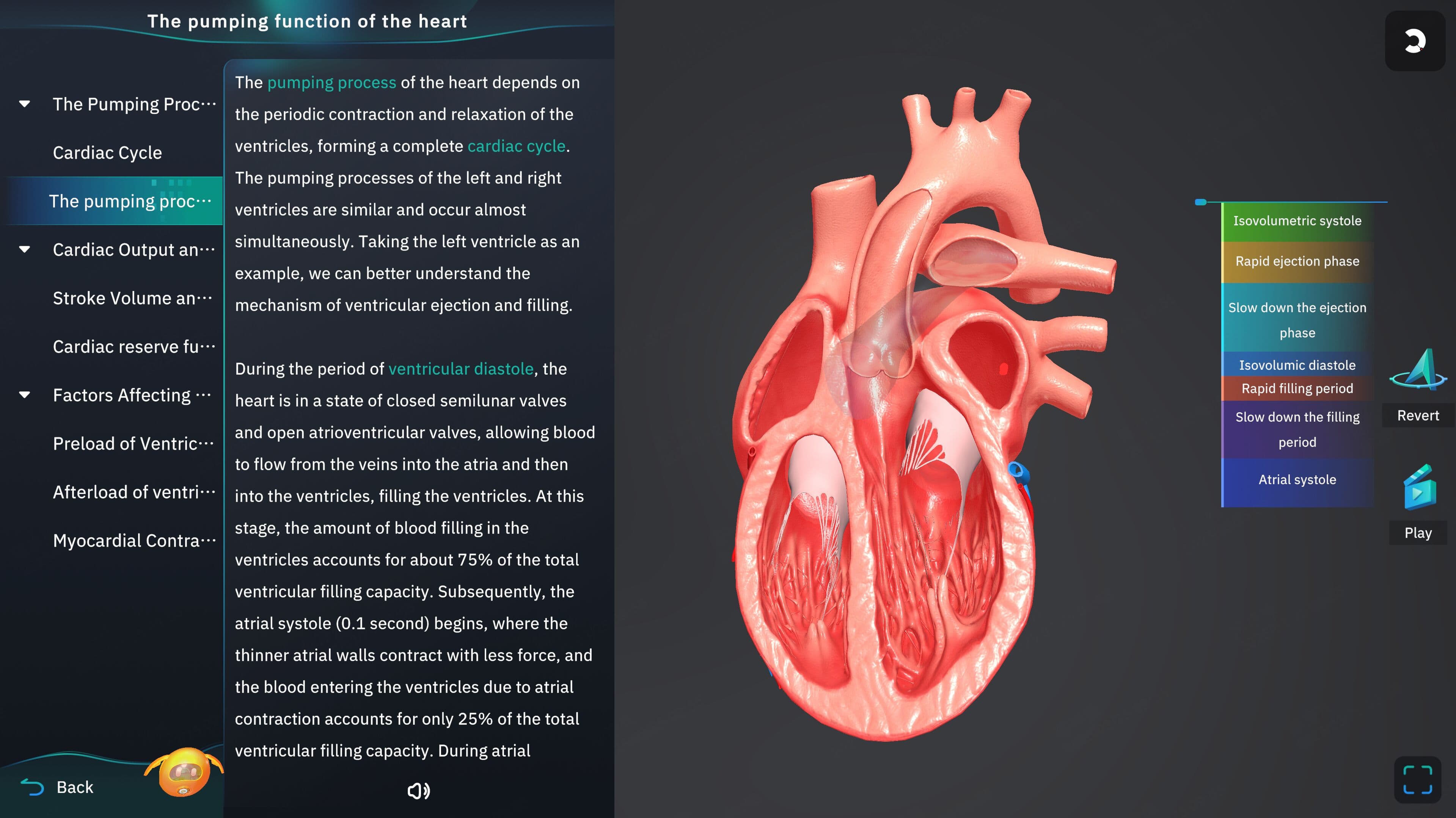 Integrating medical physiology knowledge with autostereoscopy display technology, AI-powered Q&A systems, and dynamic interactive animations to deliver an intuitive and immersive learning experience. The comprehensive curriculum coverage includes: 1. Cellular Membrane Transport: Composition of cell membranes; Transmembrane substance transportation mechanisms 2. Overview ofHematological Physiology:Blood components analysis; Physicochemical characteristics of blood 3. Cardiac Pump Function: Operational mechanisms of cardiac pumping; Cardiac output measurement & cardiac pumping reserves; Determinants of cardiac output 4. Pulmonary Ventilation: Principles of pulmonary ventilation; Assessment of Pulmonary Ventilatory Function 5. Gastric Digestion:Secretory functions of gastric juices; Gastric Motility 6. Energy Metabolism:Bioenergetic sources & utilization; Major Factors Affecting Energy Metabolism; Basal metabolic rate analysis 7. Renal Glomerular Filtration:Filtration mechanisms; Modulating factors inglomerular filtration function 8. Sensory Physiology Fundamentals: Receptor physiological properties; Encoding & processing in neural pathways 9. Neural Sensory Integration: Central processing of somatosensory inputs; Visceral sensation interpretation 10. Hypothalamic-Pituitary-Pineal Axis: Hypothalamus-adenohypophysis endocrine system; Hypothalamic-neurohypophyseal system. 11. Female Reproductive Physiology: Functional of ovarian; Menstrual cycle regulation; Ovarian senescence mechanisms